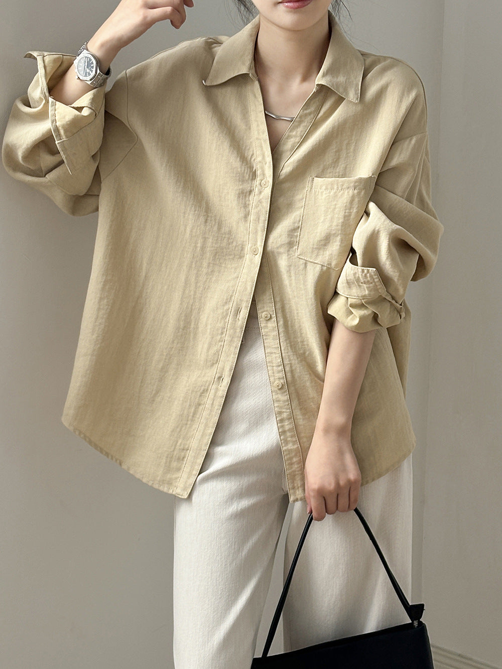 Stay stylish and comfortable this spring with this relaxed-fit V-neck shirt, crafted from a breathable cotton and lyocell blend. Designed with a button front and long sleeves, it’s perfect for casual everyday wear.